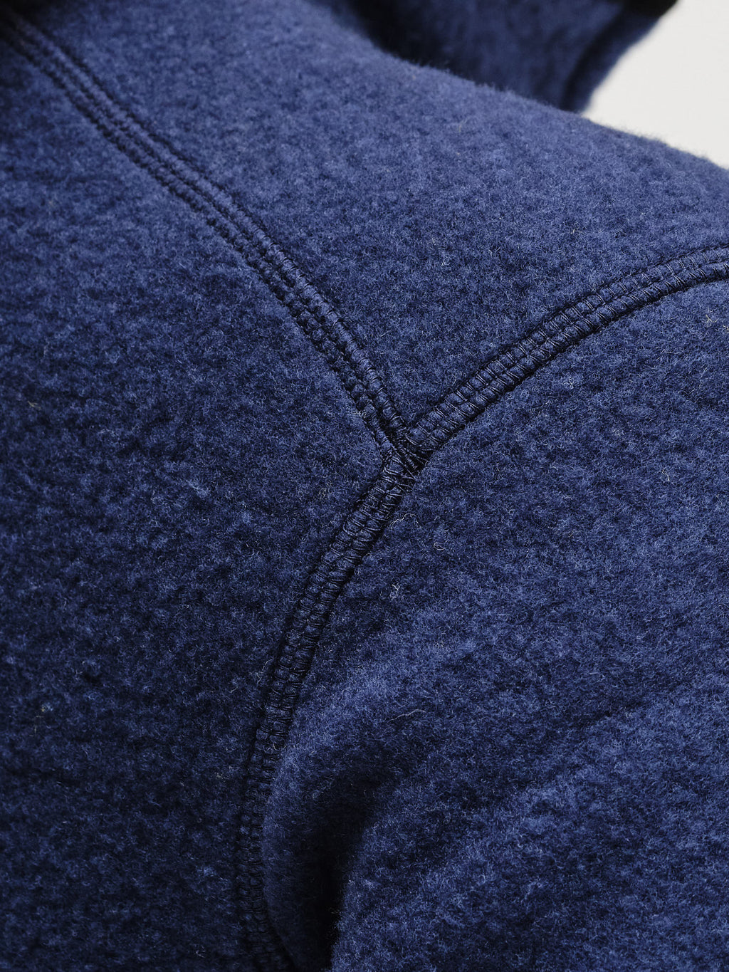 Our signature piece and answer to the industry's 100% plastic "wool polaire". Except ours is actually made of a fine brushed merino wool, keeping you warm and dry at all times. Exceptionally light, it should always be within arm's reach once you get to high alpine ridges.  100% plastic free down to the details.